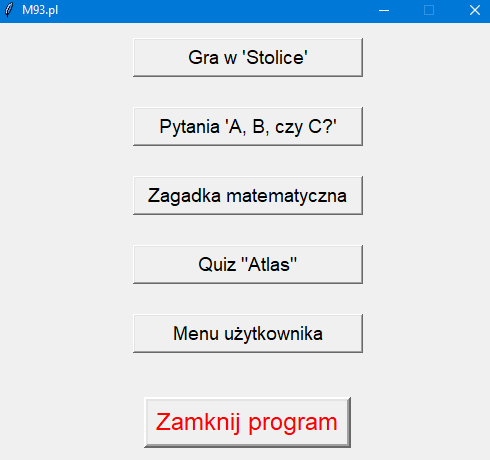 Jest to program dzięki któremu użytkownik może przetestować swoją wiedzę na temat geografii, zawiera także kilka prostych quizów matematycznych.